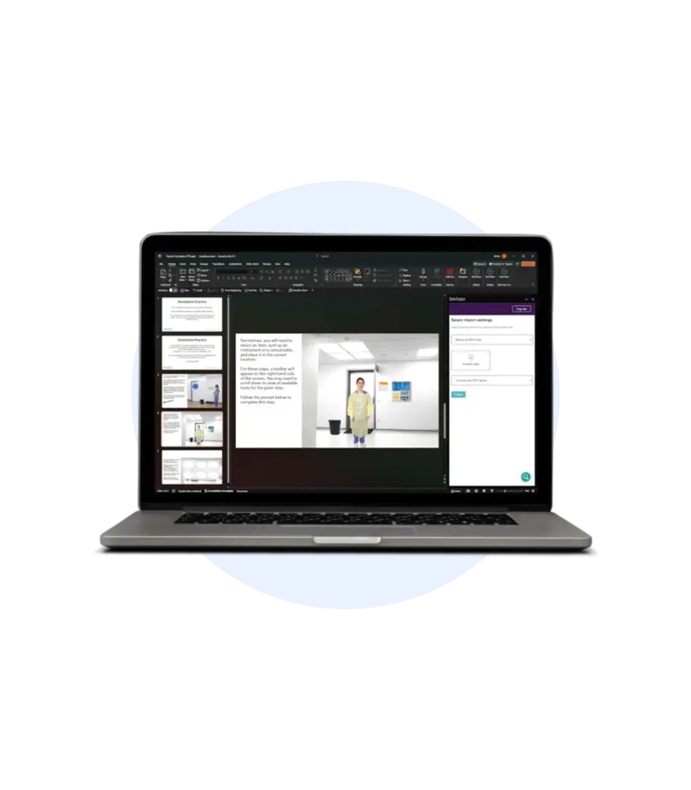 If your training lives in PowerPoints, you’re already halfway to more immersive training. SimTutor provides a Microsoft-approved add-in that lets you: